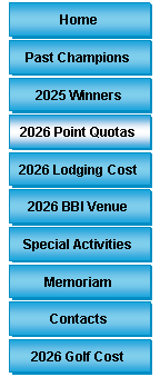 ~ 2026 Point Quotas ~These are the “point quotas” for the 2026/ 57th Annual Bratton Brothers Invitational Golf Tournament. |